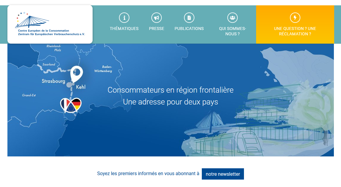 Face à une forte augmentation des demandes d’informations et des réclamations, le Centre Européen de la Consommation a décidé de repenser son principal outil de communication pour mieux guider et aider les consommateurs français et allemands de la région frontalière. A l’occasion du 15 mars, Journée internationale des droits des consommateurs, il lance son nouveau site bilingue, français/allemand, au design épuré et à la navigation simplifiée, qui offre une meilleure lisibilité des informations sur ses droits et sur la mobilité des consommateurs dans la région frontalière.
